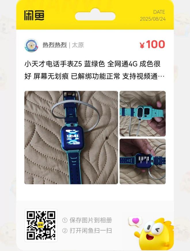 粉丝爆料分享了一台价格100元的小天才电线G 成色很好 屏幕无划痕 已解绑功能正常。