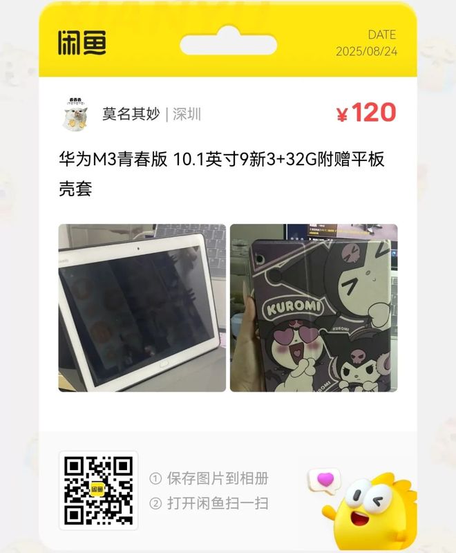 粉丝爆料分享了一台价格120元的华为M3青春版 10.1英寸9新3+32G附赠平板壳套 功能正常可插卡。