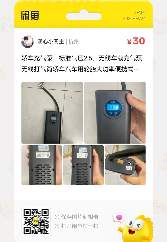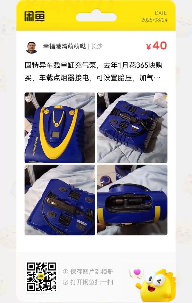 粉丝爆料分享了一台价格40元的固特异车载单缸充气泵,去年1月花365块购买,车载点烟器接电,可设置胎压,加气到设定值自动停止。